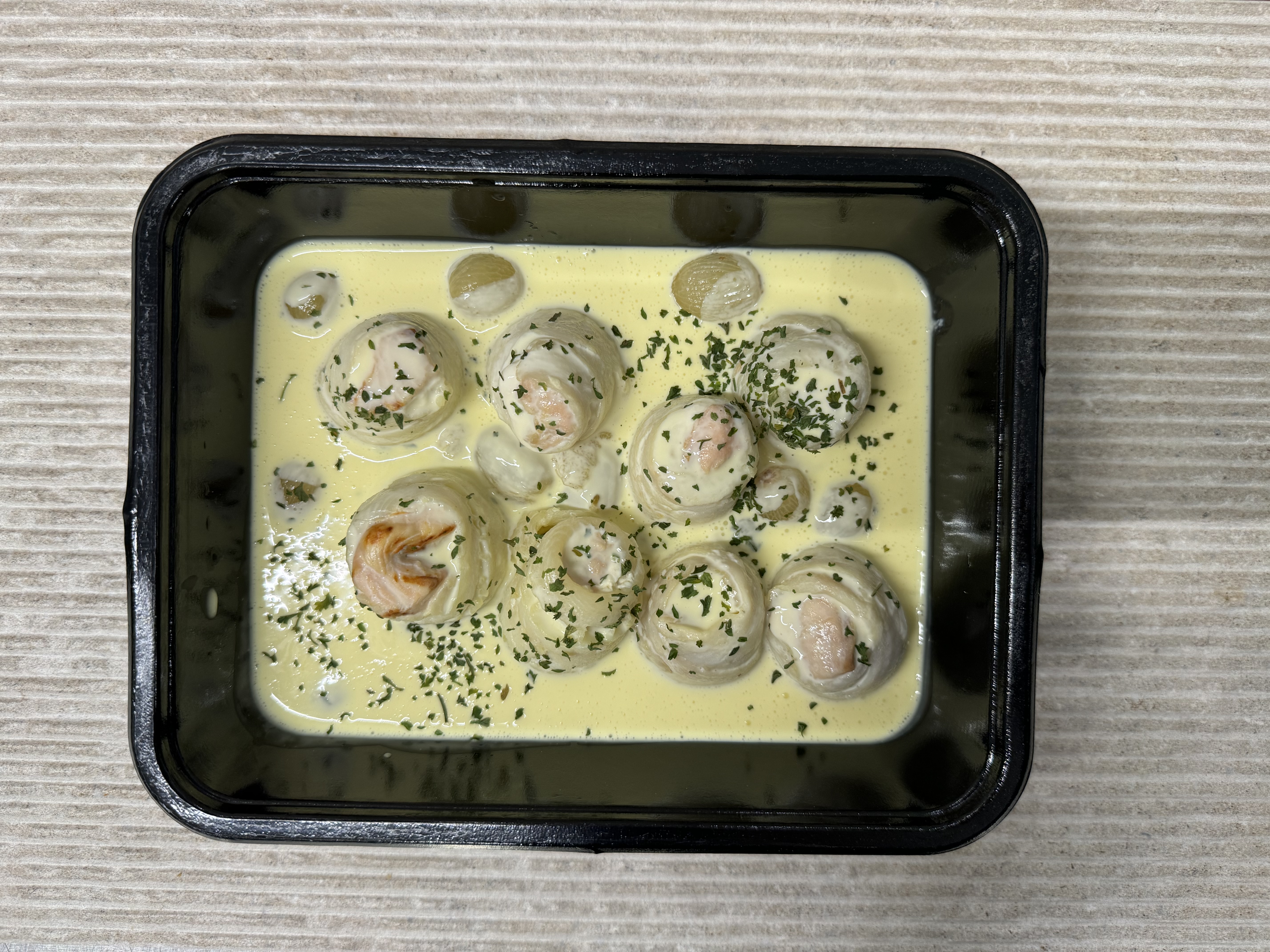 Tongrolletjes zalm in witte wijnsaus