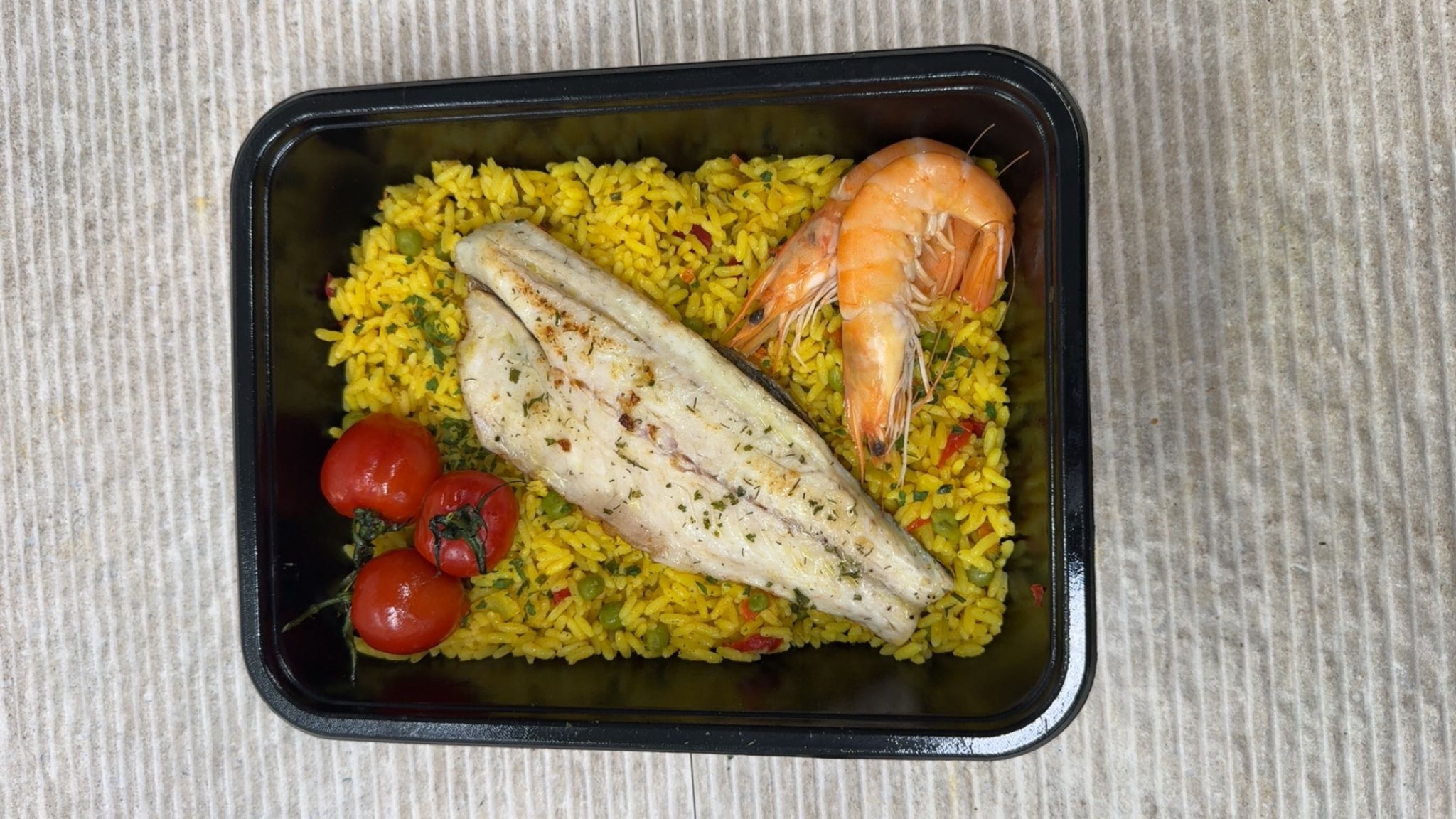 Gebakken zeebaarsfilet met geurige rijst en kerstomaat